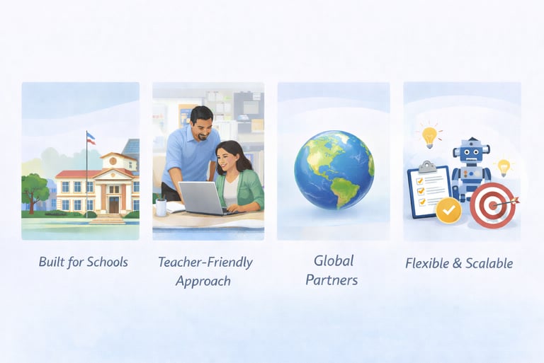 We partner with schools to deliver strong coding and robotics programs, support teachers with practical AI and digital tools, and build the digital foundations needed to run modern education programs sustainably.