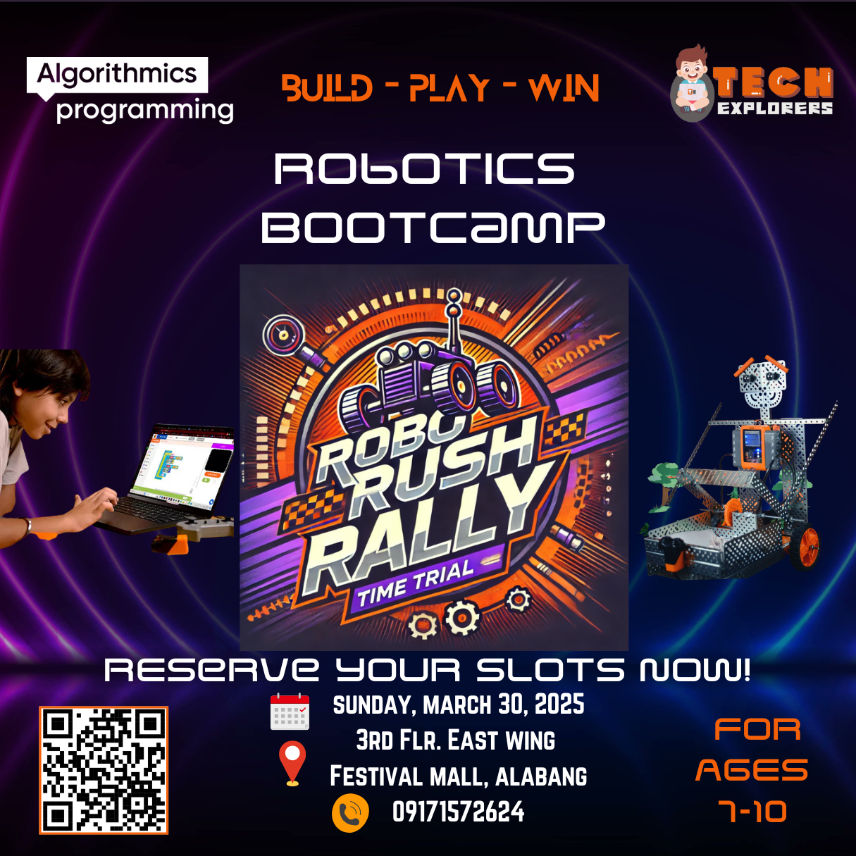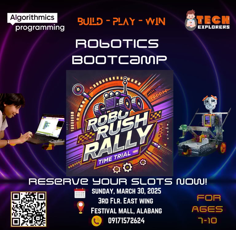 This 2.5 hours long Robotics Bootcamp is designed for kids aged 7–10. This robotics session introduces participants to the basics of robot assembly and automation. They will build their own Remote-Operated Robot, then take on the track one at a time, racing against the clock to complete it in the shortest time possible. The fastest robot wins! A fun, hands-on experience that blends creativity, technical skills, and friendly competition.